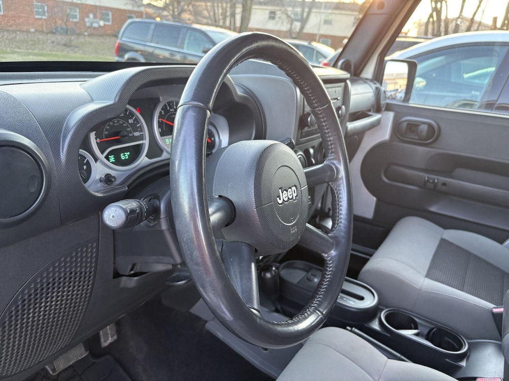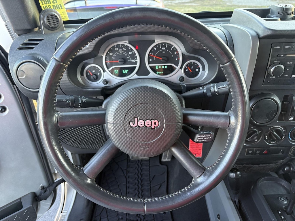 The 2010 Jeep Wrangler Unlimited Rubicon offers a comfortable and practical interior, ready for anything from daily commutes in Charleston to weekend adventures. Sink into the supportive low-back bucket seats upholstered in durable cloth, perfect for those early morning drives. The leather-wrapped steering wheel provides a premium feel and comfortable grip for navigating both city streets and off-road trails.